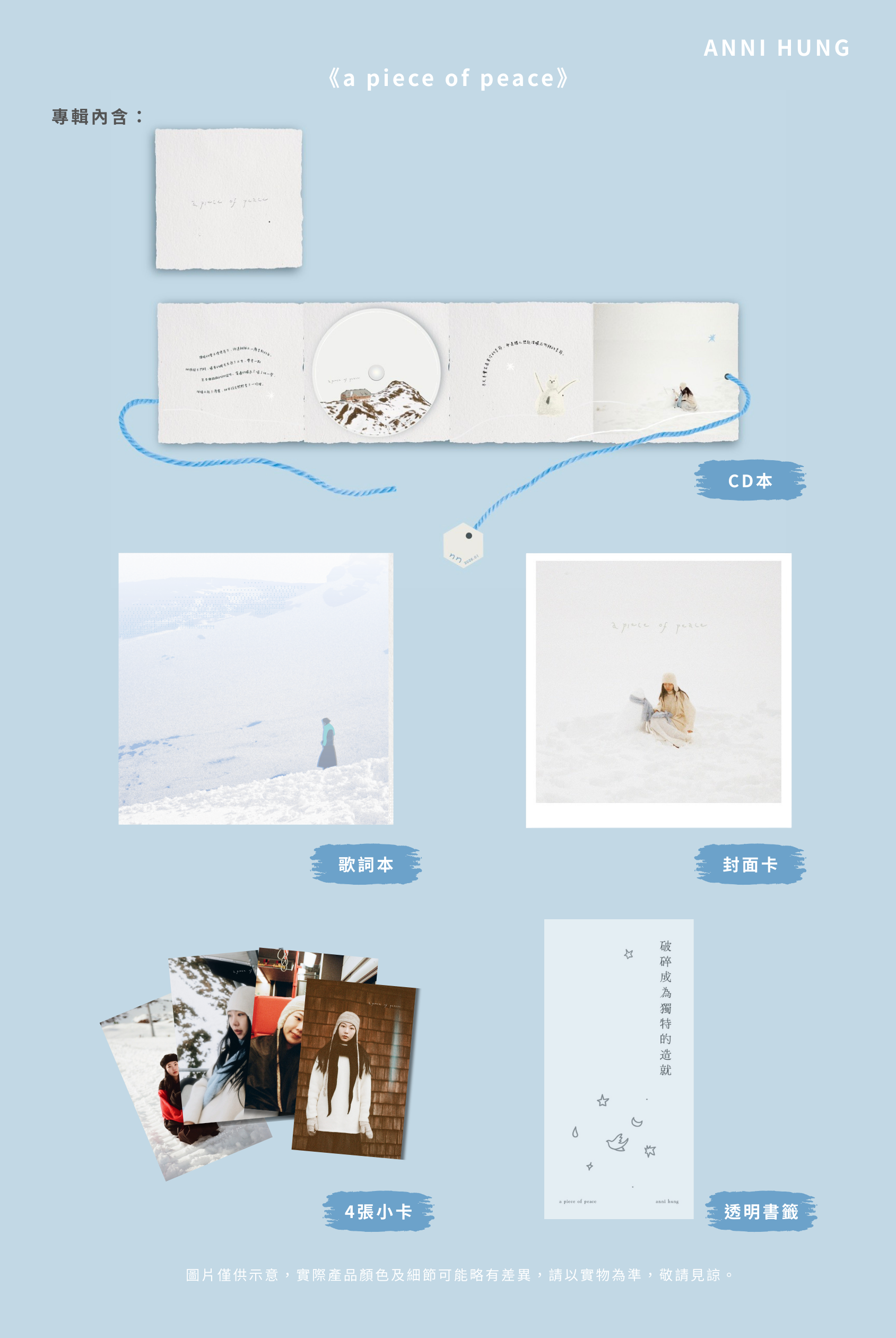 a piece of peace 全部都要(專輯+雪人喵+明信片+收納袋+天然石手鍊擇一)